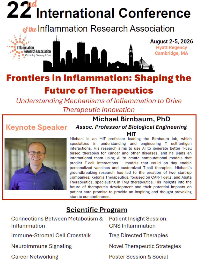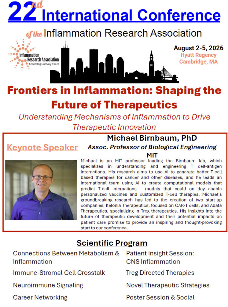 Welcome to the Inflammation Research Association, a non-profit organization dedicated to engaging and encouraging scientists, researchers, students, teachers and clinicians with an interest in inflammation biology. Our mission is to foster and facilitate a more informed, connected and collaborative community whose goal is to serve and promote scientific and technological advances towards developing new therapeutic strategies for complex and diverse inflammation-related diseases.